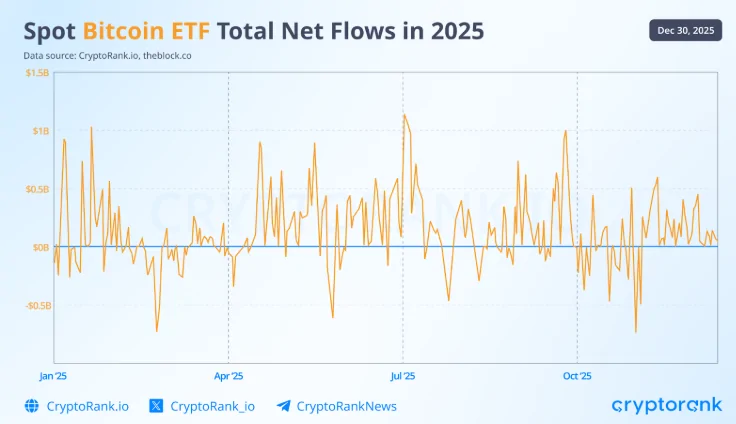 Large ETF inflows supported the market rally from summer through October. Once significant outflows began, the market quickly reversed. In November, Bitcoin recorded $3.5B in net outflows, followed by another $1.1B in December. At this point, it is clear that a broader market recovery remains difficult without renewed institutional inflows.