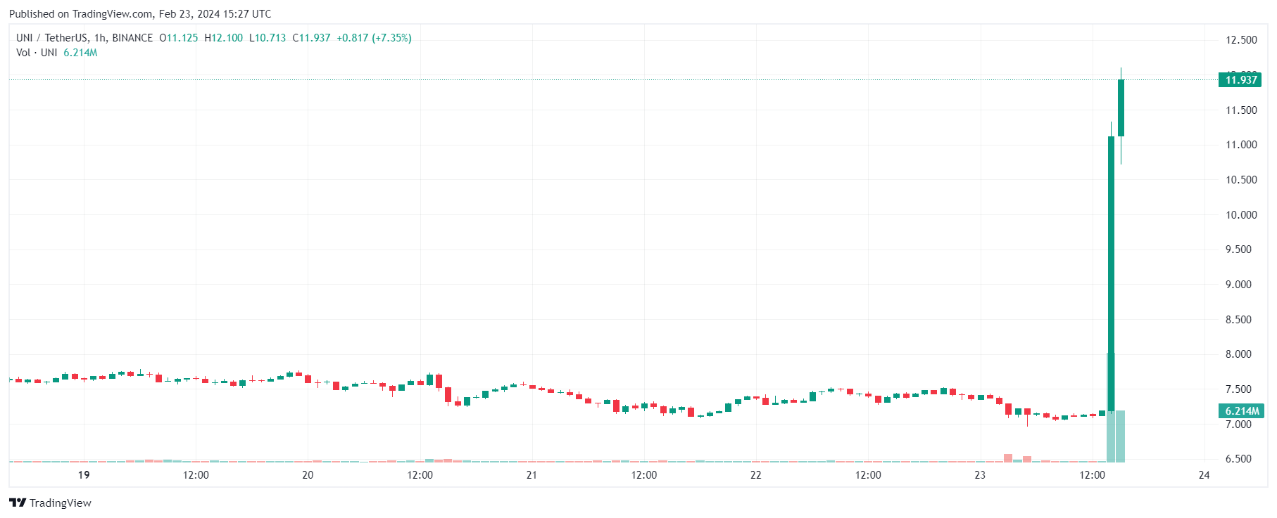 Following this announcement, Unisawp's native token, UNI, rose by more than 60%.