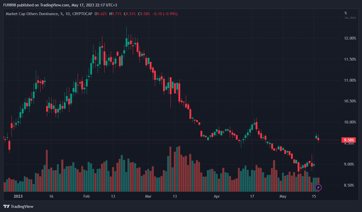Altcoin market cap dominance value is at the level of 9.59% at the time of this writing.