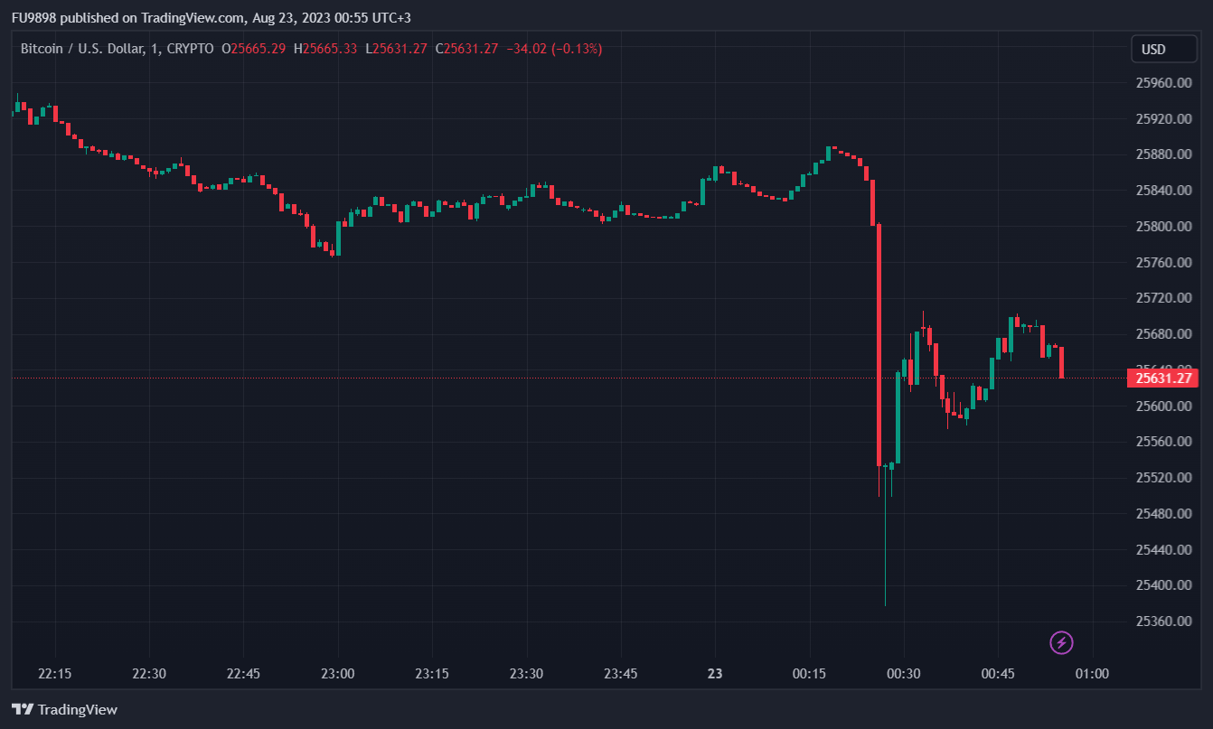 BTC, which was at the $ 25,900 border before the decline, fell to approximately $ 25,300 after the depreciation. The exact reason for the decline is unknown, but it appears to be a continuation of the bearish wave that started last Thursday.