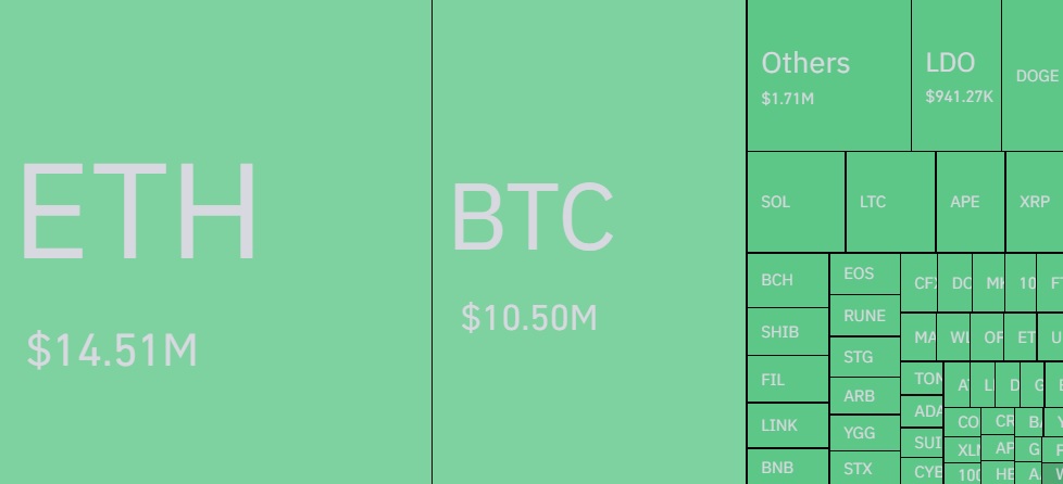 If analyzed individually, it is seen that the largest liquidation occurred in Ethereum with approximately $ 14 million, followed by Bitcoin with $ 10.50 million, and among other altcoins, LDO, DOGE and SOL, respectively.