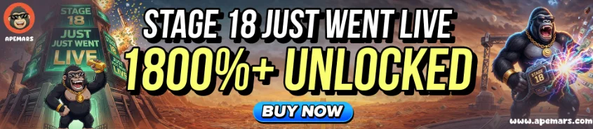 Amid shifting sentiment, APEMARS Stage 18 is gaining attention as a structured entry model within the best meme coins to buy now narrative. Unlike traditional meme tokens, APEMARS uses a stage-based pricing system where each phase increases token cost, creating a defined early-access structure.