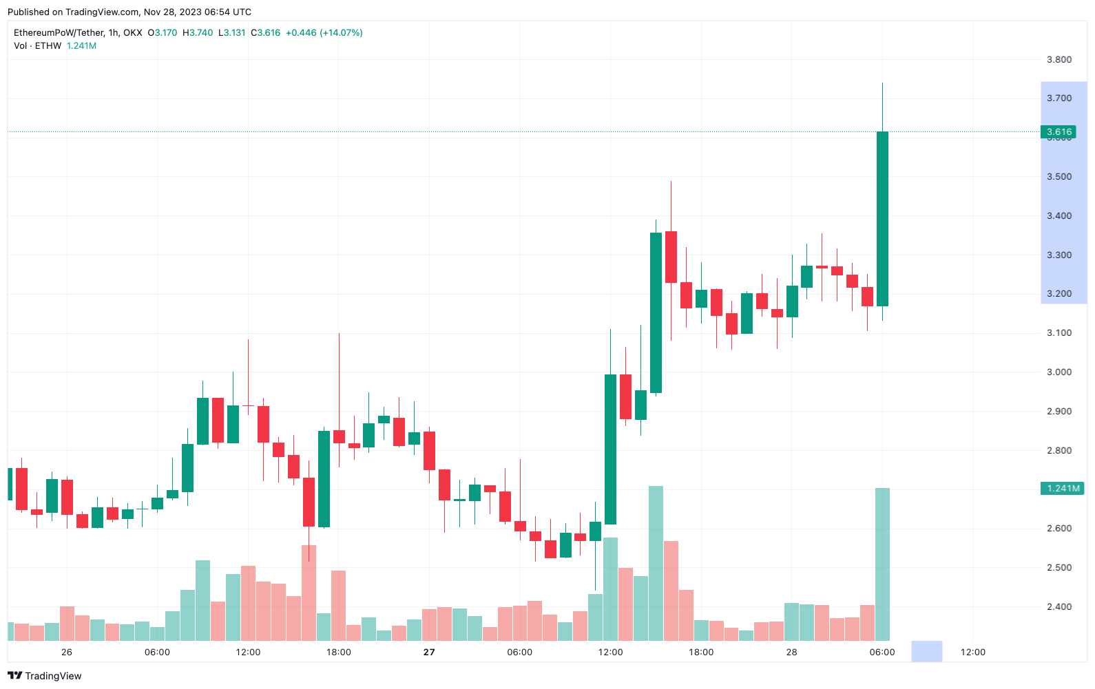 “Binance Futures will launch the ETHW Perpetual Contract with up to 50x leverage on 11/28/2023 12:30 UTC.”