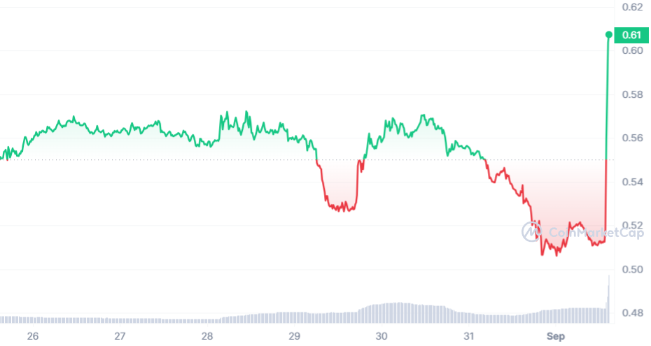 According to the data, the price of the altcoin jumped from $ 0.51 to above $ 0.60 with a sudden jump of approximately 18% and is trading at $ 0.604 at the time of this writing.