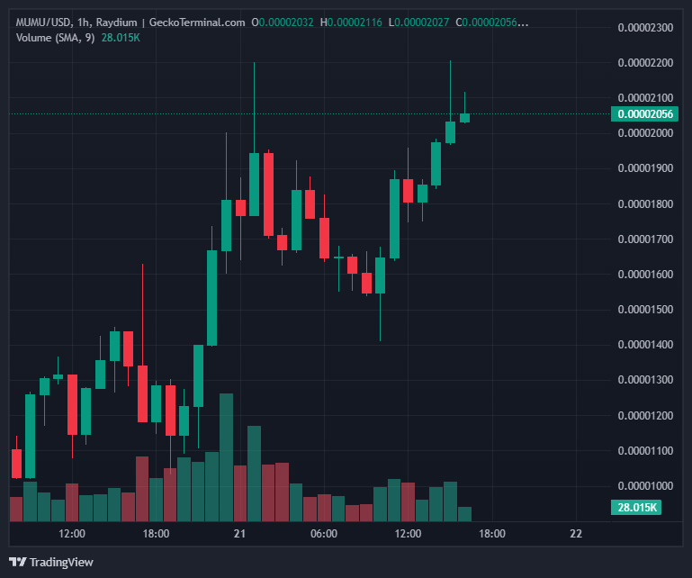 Following Binance's crypto bull post, the price of MUMU, a Solana (SOL)-based meme token, experienced a significant increase.