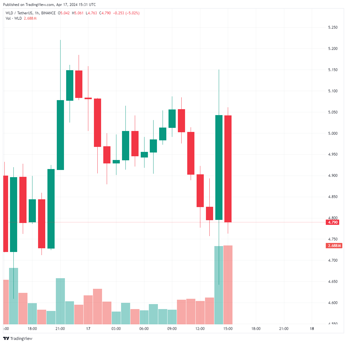 Although WLD experienced an increase of more than 7% after the news, it gave back all of these gains with the general decline in Bitcoin (BTC) and altcoins.
