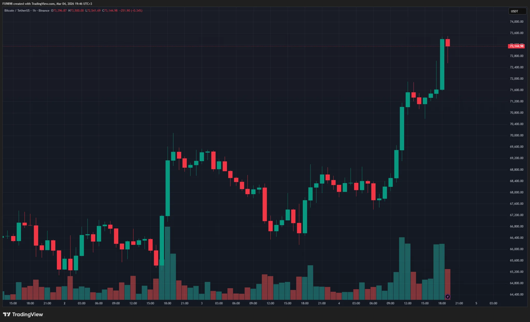 According to market data, Bitcoin rose approximately 8% during the day, climbing above $73,000 and reaching its highest level in about a month. Ethereum, the second-largest cryptocurrency, also surged by up to 9%, climbing above $2,100.