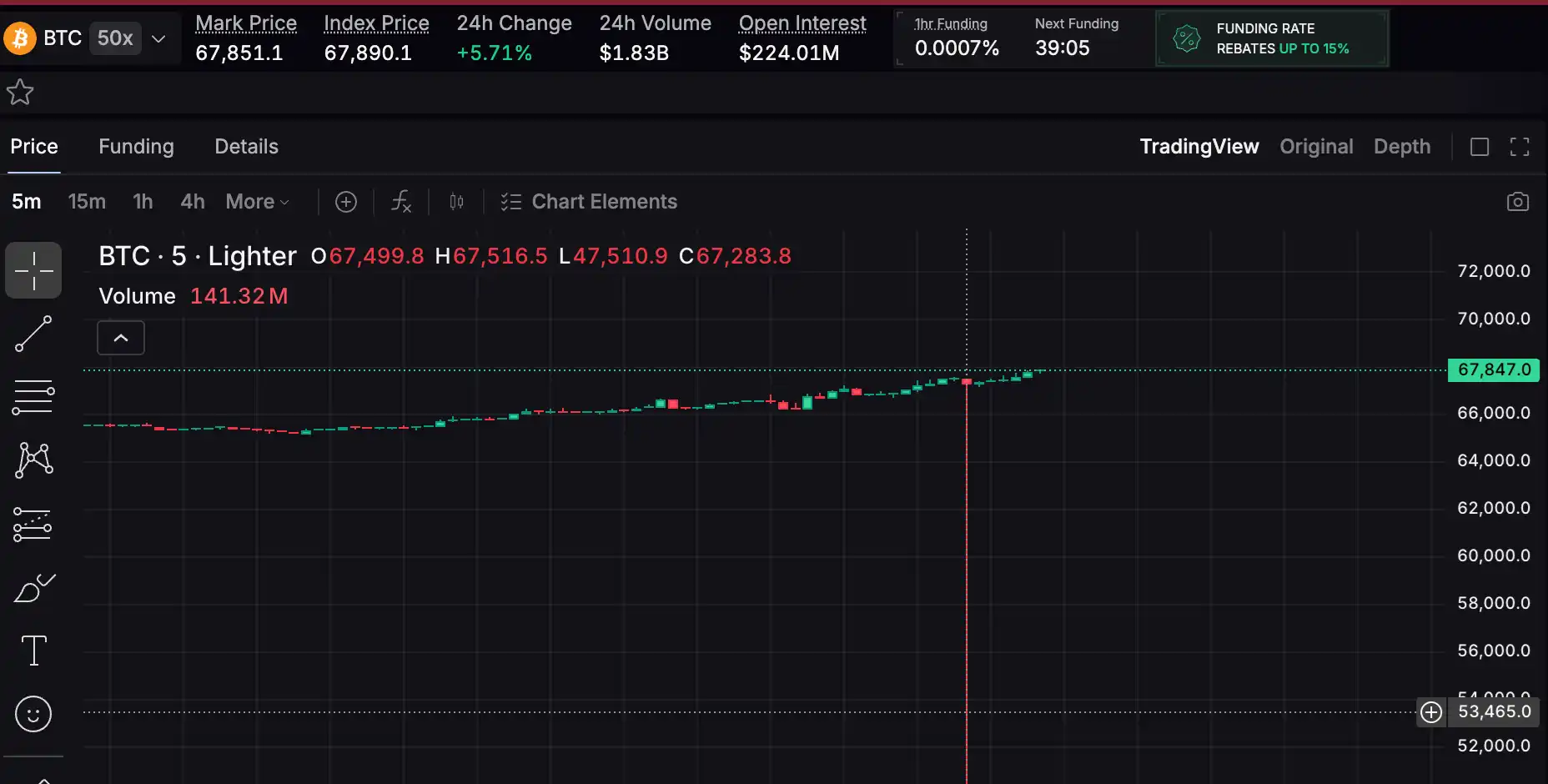 The Bitcoin (BTC) contract traded on the cryptocurrency derivatives platform Lighter experienced a sudden and unusual price movement due to limited liquidity.
