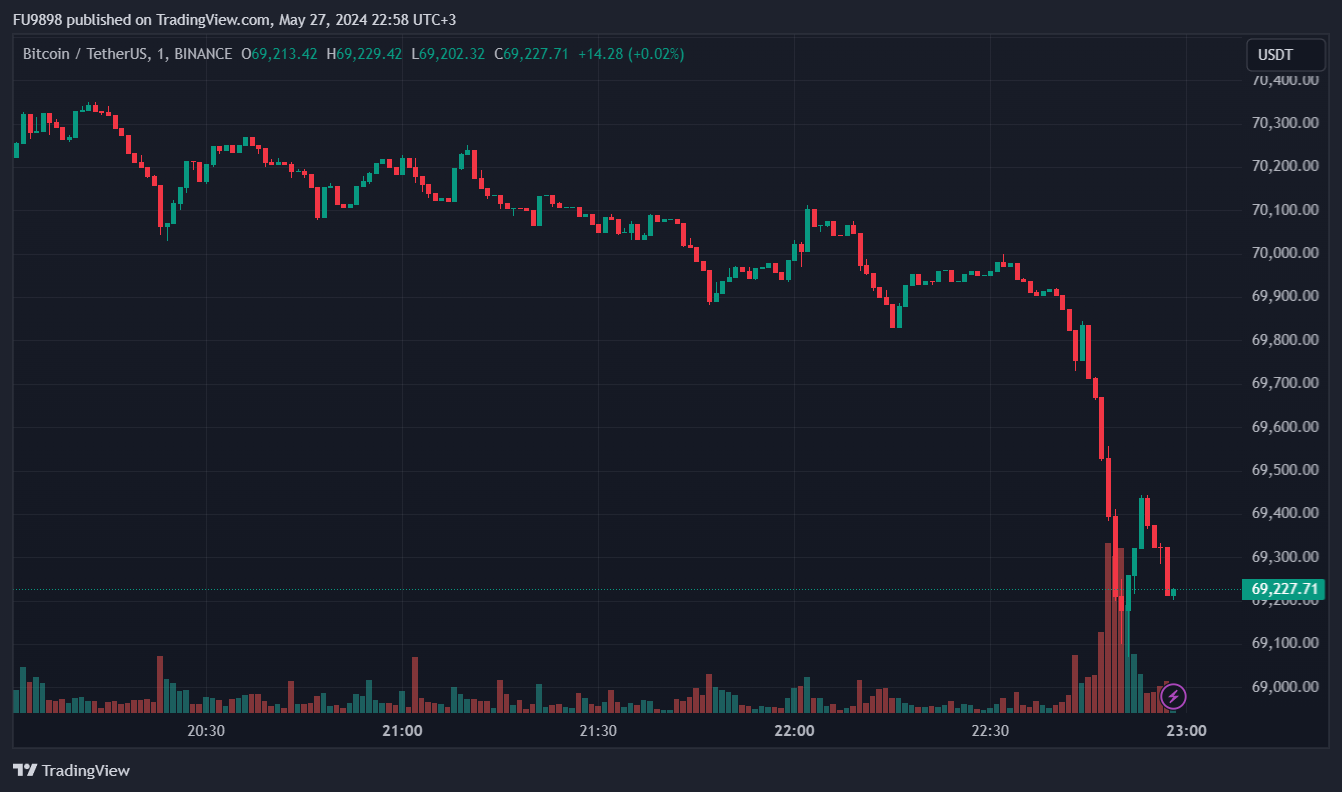 According to the data, the Bitcoin price showed a sudden decline in the last minutes from around $ 70,000 to the 69,000 region. There was a drop of more than 1% in about half an hour.