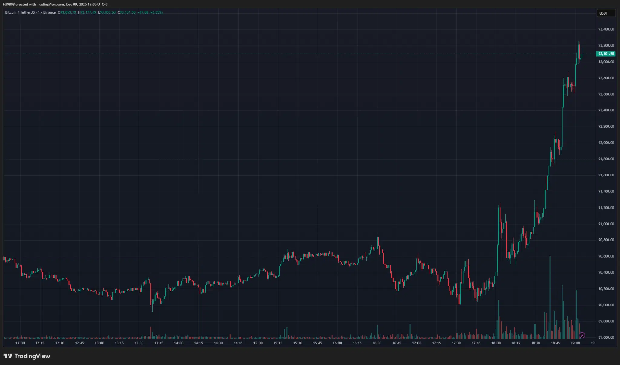 Bitcoin (BTC) has been gaining strong bullish momentum in the last hour, rapidly rising from the $90,000 level to above $93,000.
