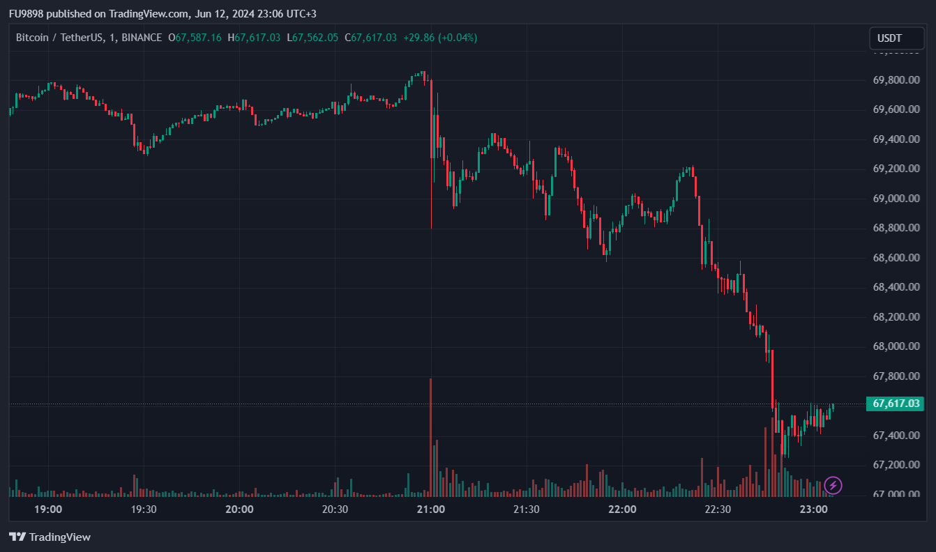 While the Bitcoin price was traded at approximately $69,800 before the interest rate decision, it was around $67,500 at the time of writing this article.