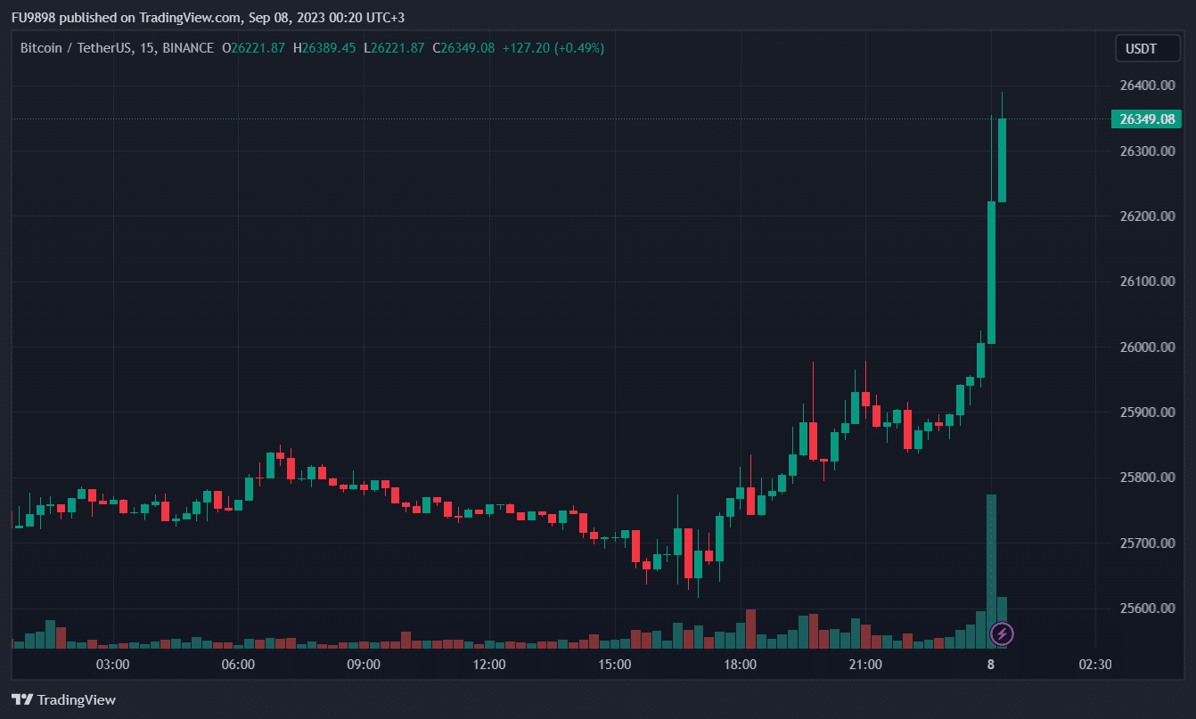 According to the latest data, Bitcoin price has gained 2.3% with a sudden movement from around $ 25,800 and is trading at $ 26,200 at the time of this writing.