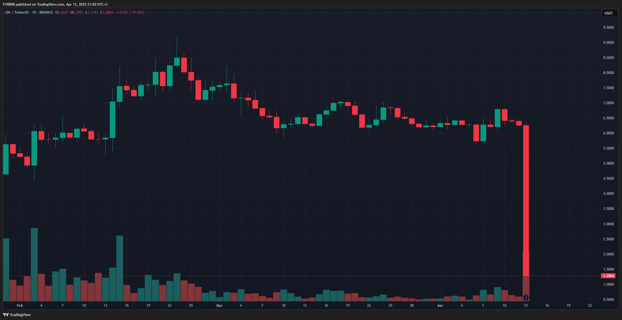 According to breaking news, the price of the Mantra (OM) token, which is also listed on Binance, suddenly dropped by 77%.