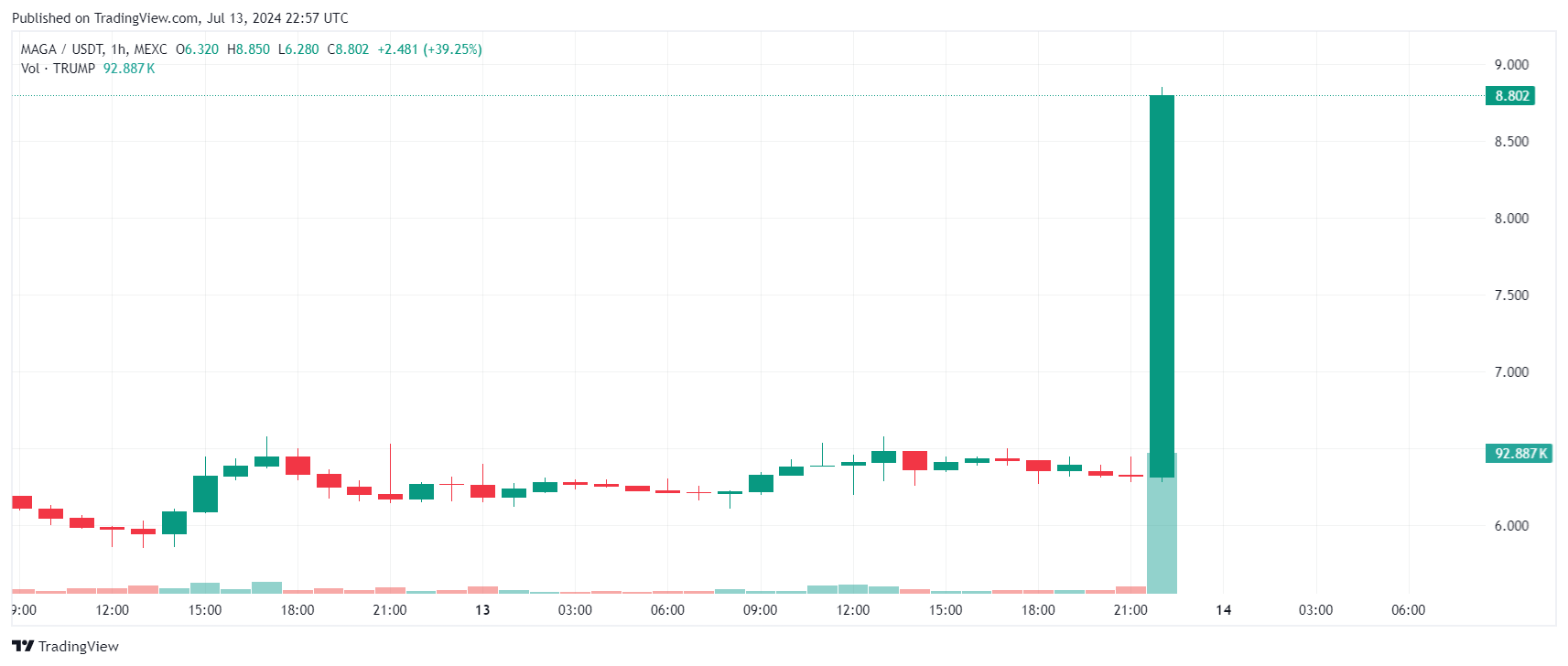 After the Trump news and the understanding that he was good, there was a big rise in the memecoin named TRUMP (MAGA). Accordingly, the MAGA price increased by 42% within minutes. Meanwhile, the price of Bitcoin (BTC) exceeded $ 59,000.