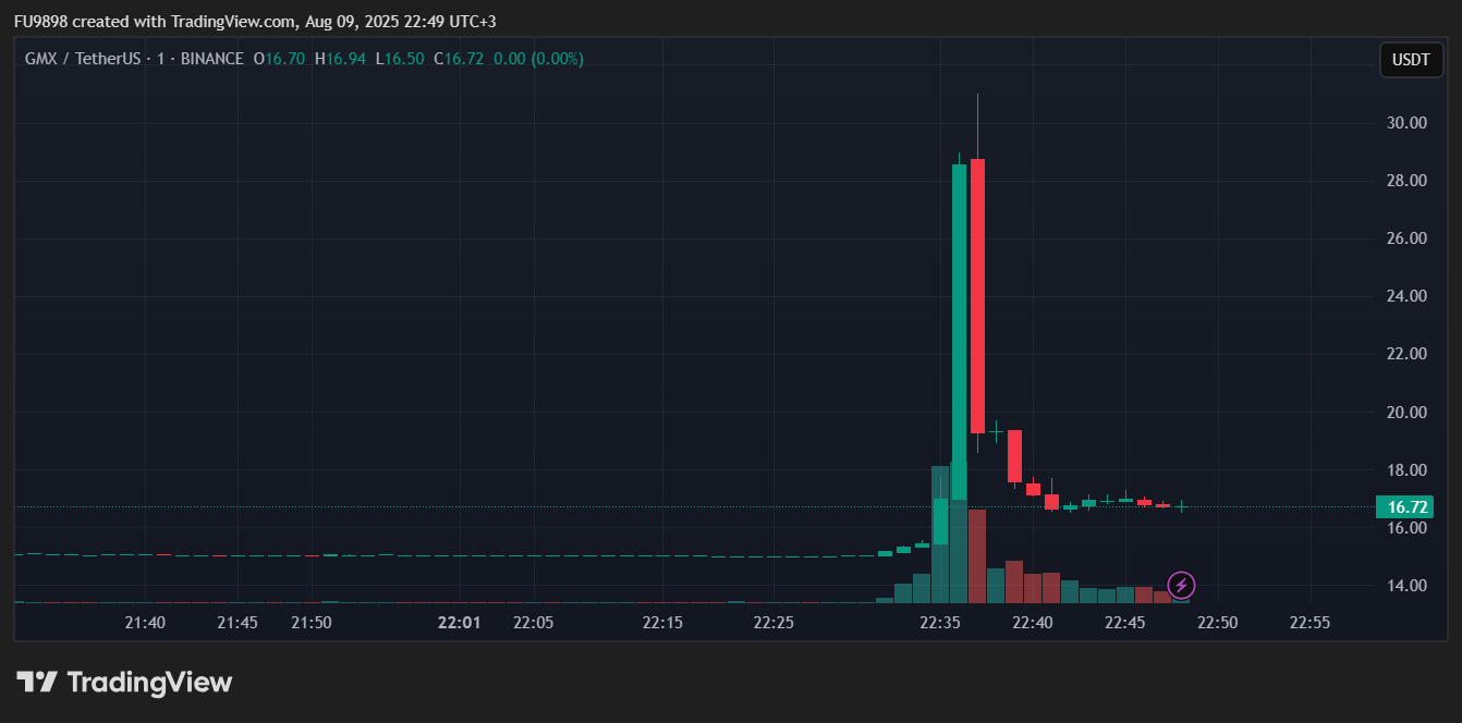 According to breaking news, a trader's TWAP transaction on the Binance spot market increased the price of GMX by 100% in a short time.