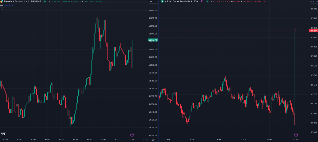 The first reaction of Bitcoin and the dollar after the announced data was as follows.