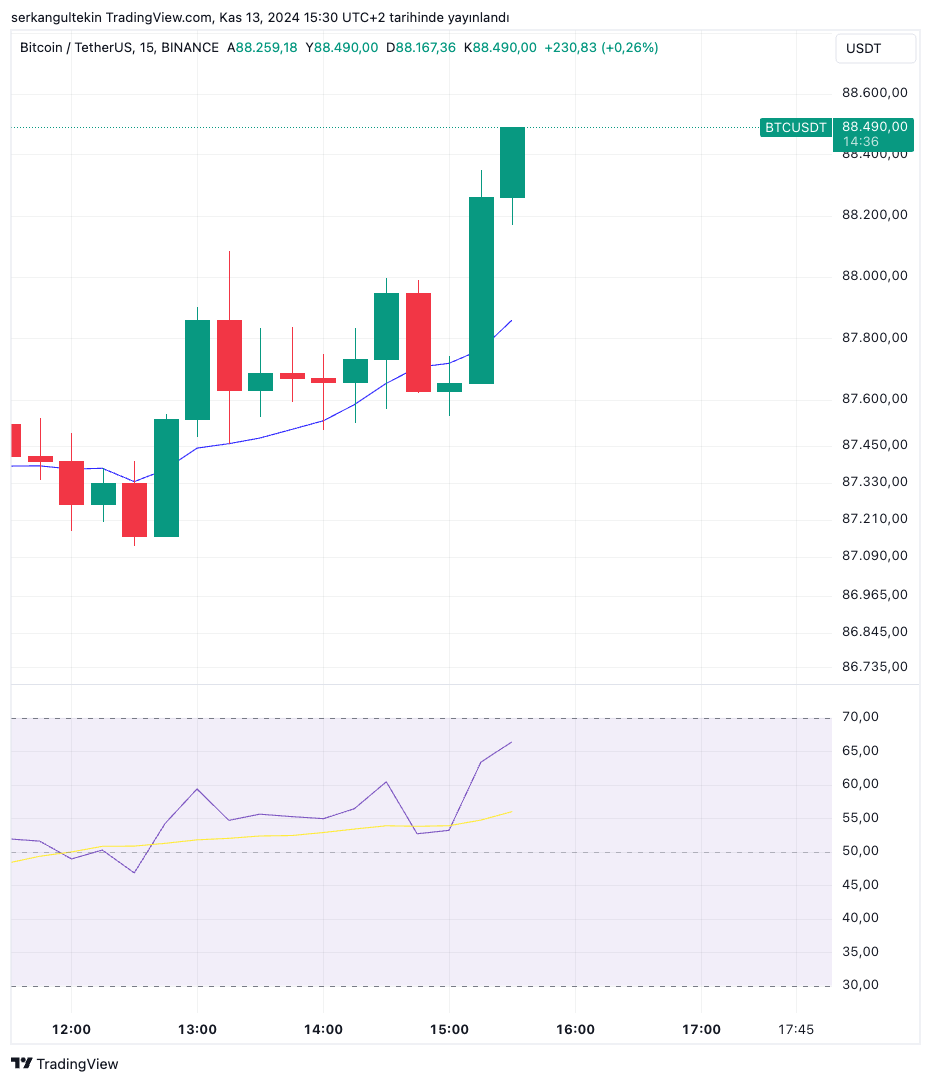 Bitcoin (BTC), the leading cryptocurrency that has been running from record to record since Donald Trump's victory, fell from yesterday's $ 89,000 levels to $ 87,200.