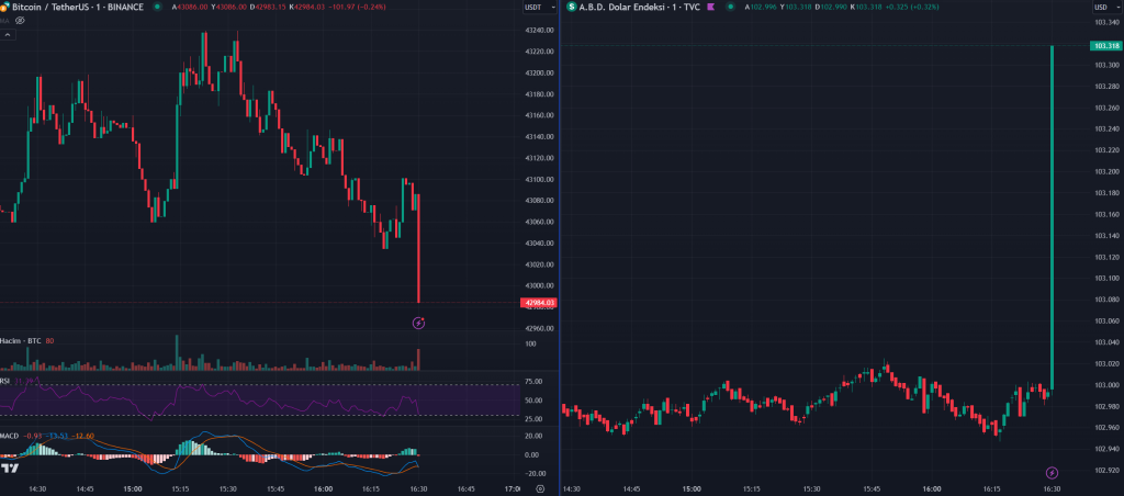 The reaction of Bitcoin and dollar index after the incoming data was as follows: