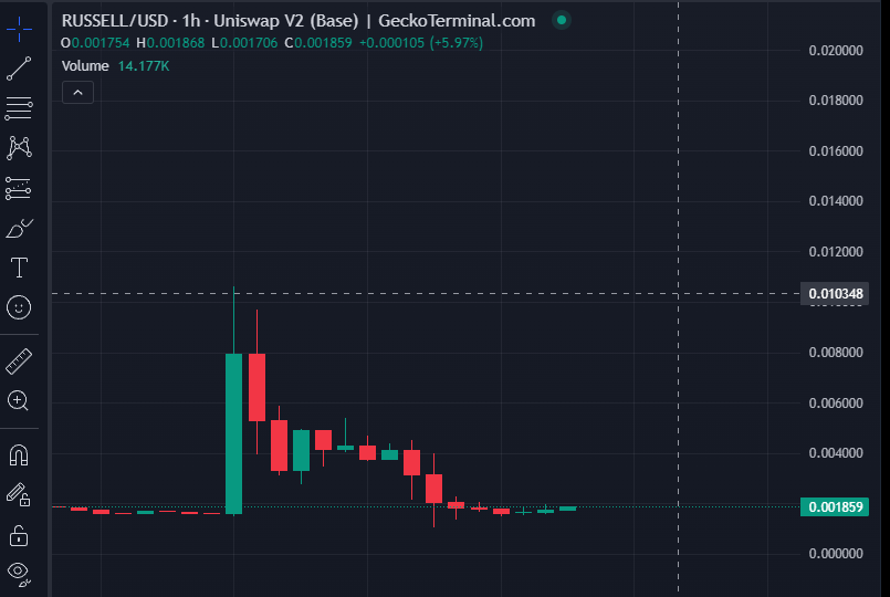 RUSSELL, who gained over 500% after the conversation between the Coinbase CEO and Truth Terminal, later gave back almost all of these gains.