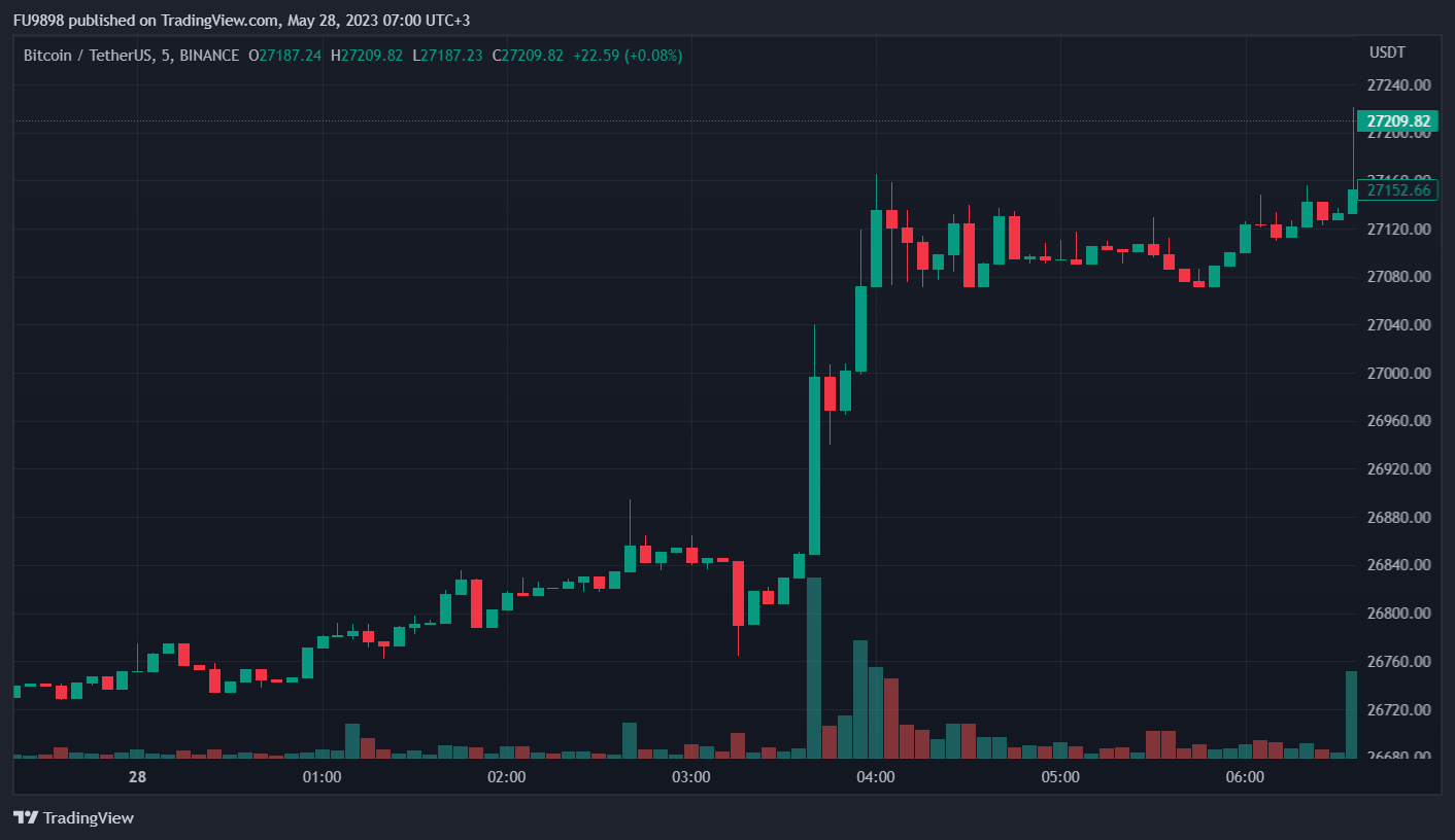 The reaction of Bitcoin (BTC) after the announcement of the agreement in principle:
