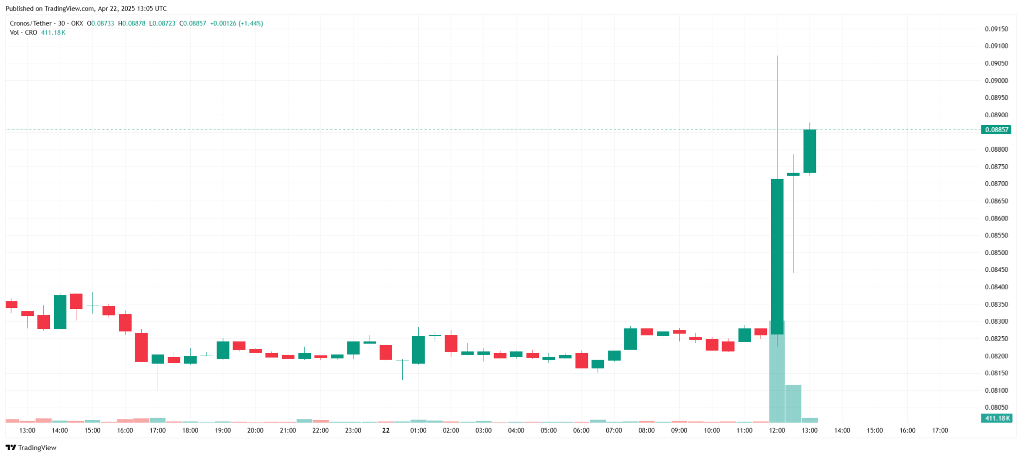 Following the completion of the previously announced deal, the popular exchange’s altcoin Cronos (CRO) gained up to 10% in minutes but gave back most of its gains.