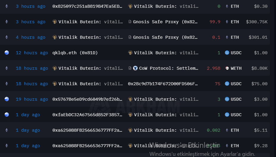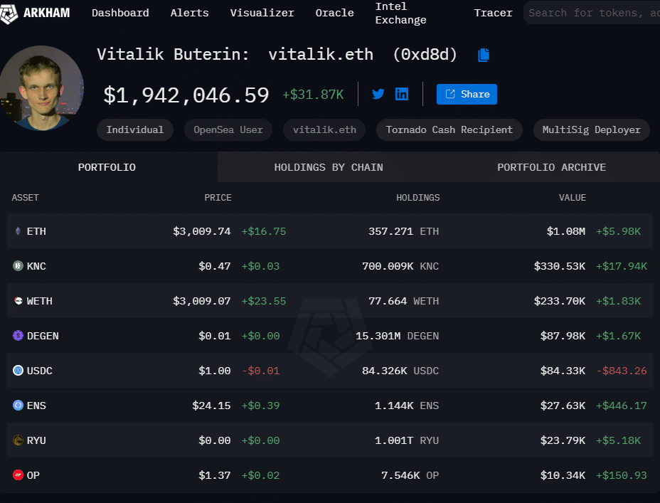 According to Arkham data, Vitalik Buterin's wallet contains $1.94 billion worth of cryptocurrencies. While the majority of this consists of Ethereum, there are also various altcoins.