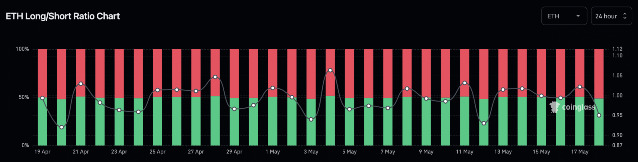 While the total value locked in the ETH network continues to rise, a different expectation prevails in the futures markets. According to the chart shared by market follower Coinglass, short transactions continue to dominate in the futures market.