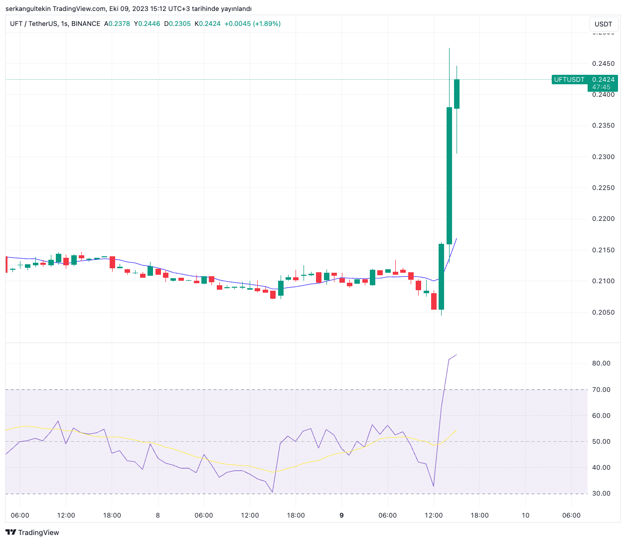 With this purchase, the price of UFT listed on Binance increased by up to 20%. UFT, which rose to $ 0.2476, continues to be traded at $ 0.2424.