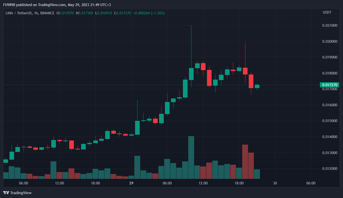 LINA is a token that allows users to create and trade synthetic assets on the Linear Finance platform running on both Ethereum and Binance Smart Chain. LINA had a strong performance in the last 24 hours, gaining 20% to reach $0.021. However, after Jump Trading broke news of the transfer, LINA's price dropped to $0.017, erasing some of its gains.