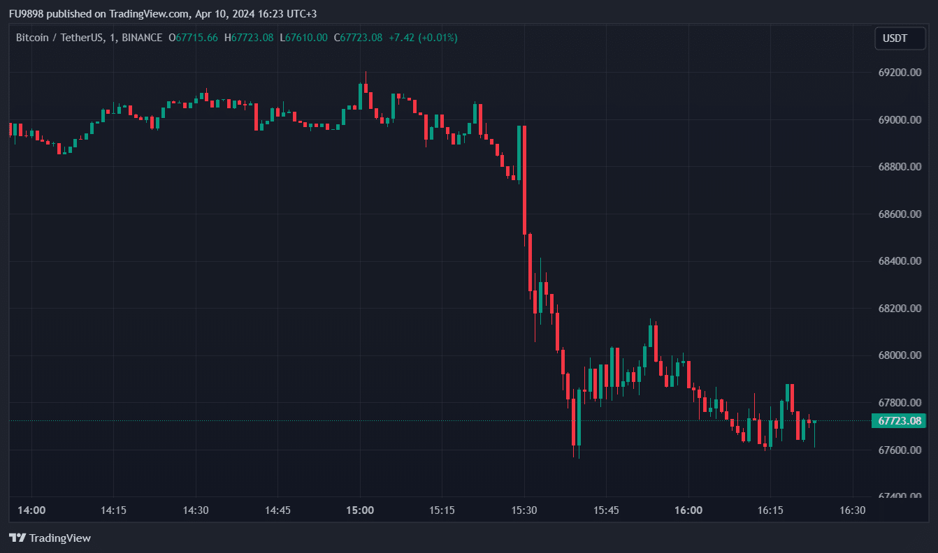 Bitcoin price fell below $68,000, declining by over 2% in the last hour, and is trading at $67,670 at the time of writing.