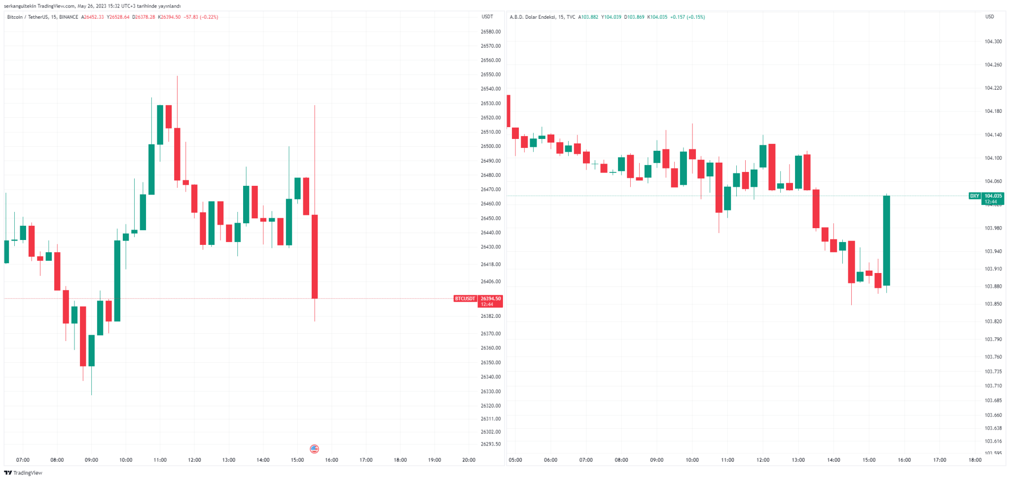 Here is the first reaction of Bitcoin and Dollar Index after the data