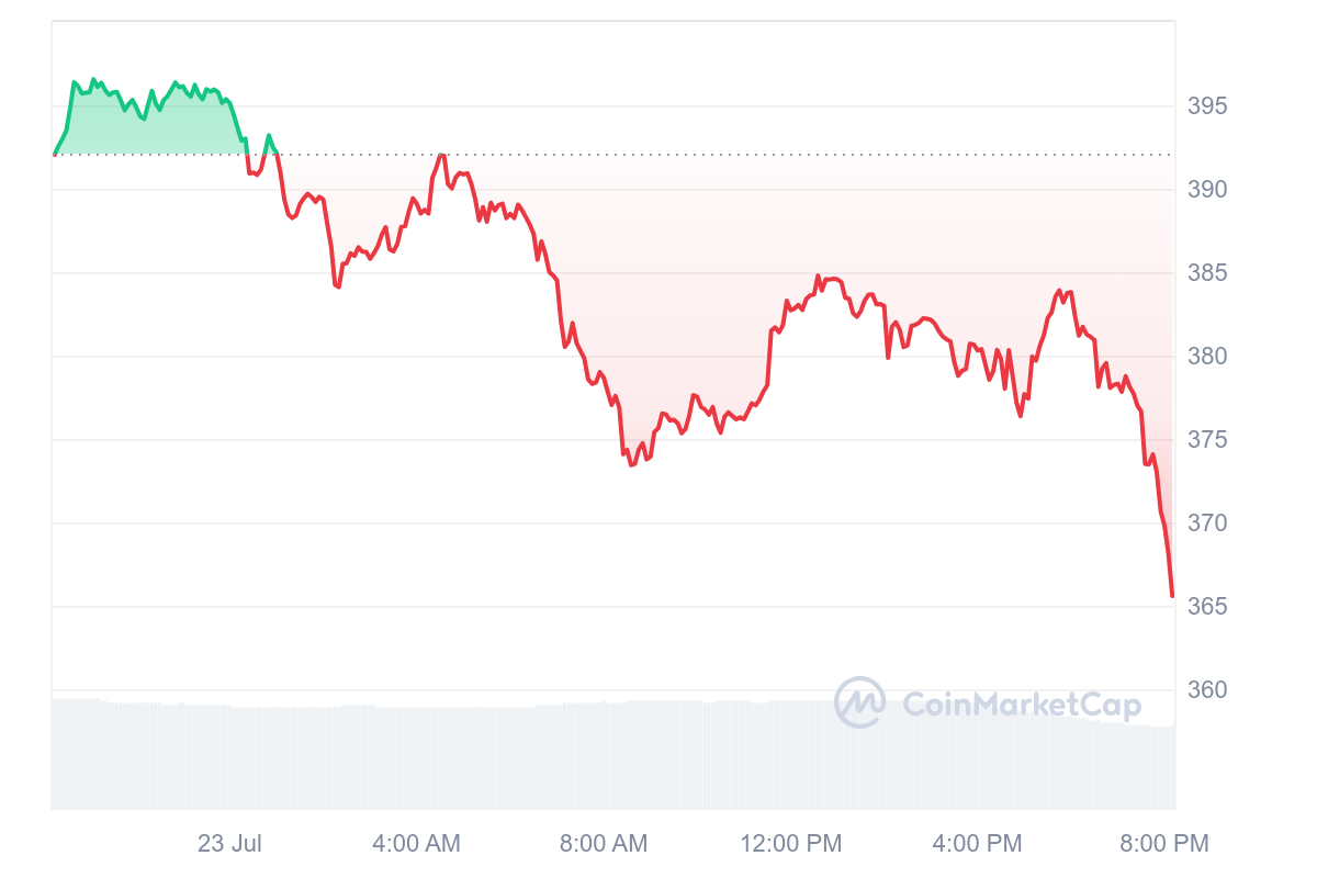 BCH, which was traded at around $ 395 earlier in the day, is trading at $ 364 at the time of writing this article.