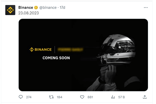While the helmet and athlete used in the image suggested that the announcement may be related to the new partnership and sponsorship agreement, the Binance post was filled with hundreds of messages.