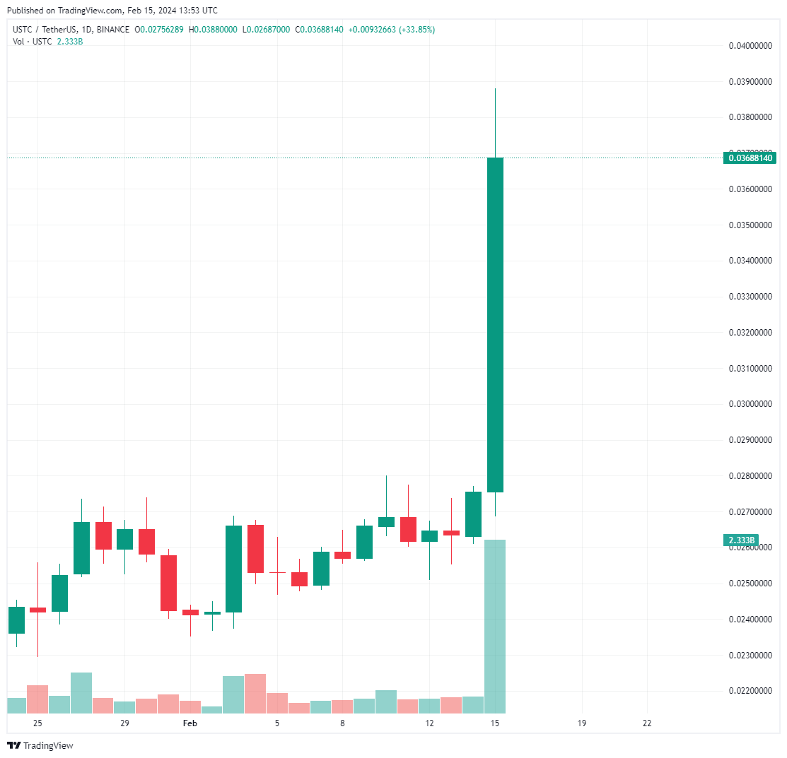 Following this news, Terra (LUNA), LUNC and USTC prices increased. LUNA and LUNC have increased by approximately 13% in the last 24 hours, while USTC has increased by 35%.