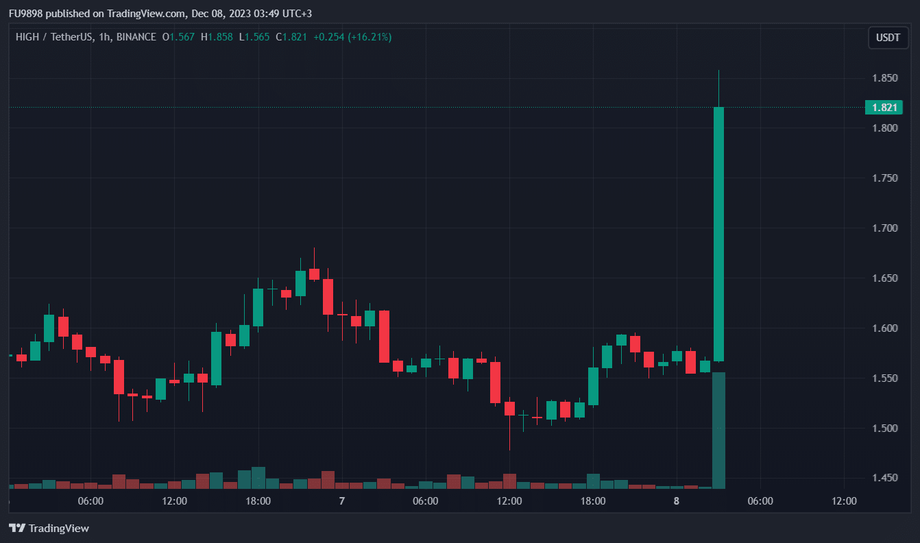 HIGH is currently listed on major cryptocurrency exchanges such as Binance and Coinbase and can be considered among the small-cap cryptocurrencies with a market value of $90 million at the time of writing.