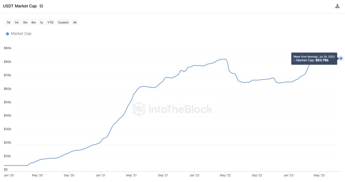 However, it had a hard time maintaining this level in the face of market volatility and skepticism. Now, in a remarkable development, USDT's market cap has surpassed its previous record, signaling strong demand for the stablecoin.