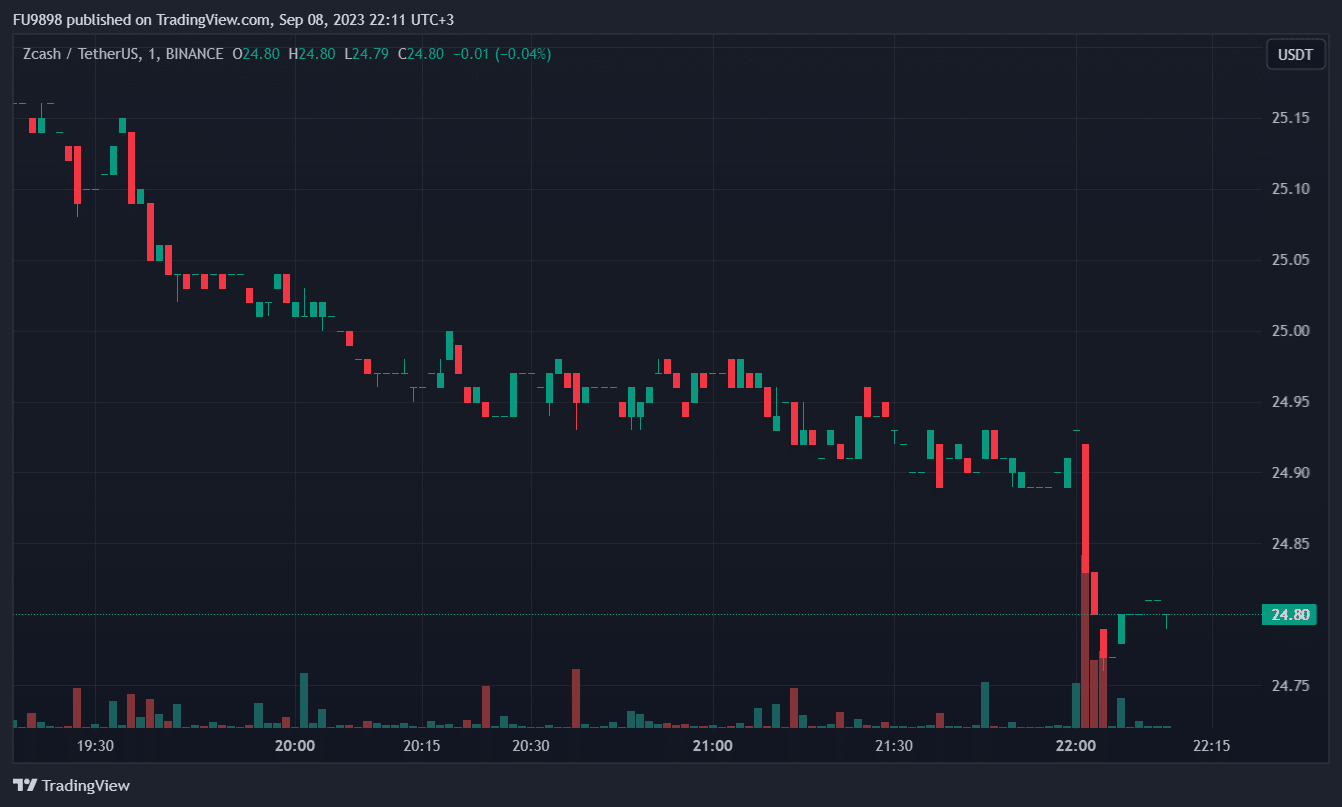 Zcash is also a privacy coin and one of the largest by market cap. After the development, there was a sudden decrease in the price of ZEC, albeit slightly.