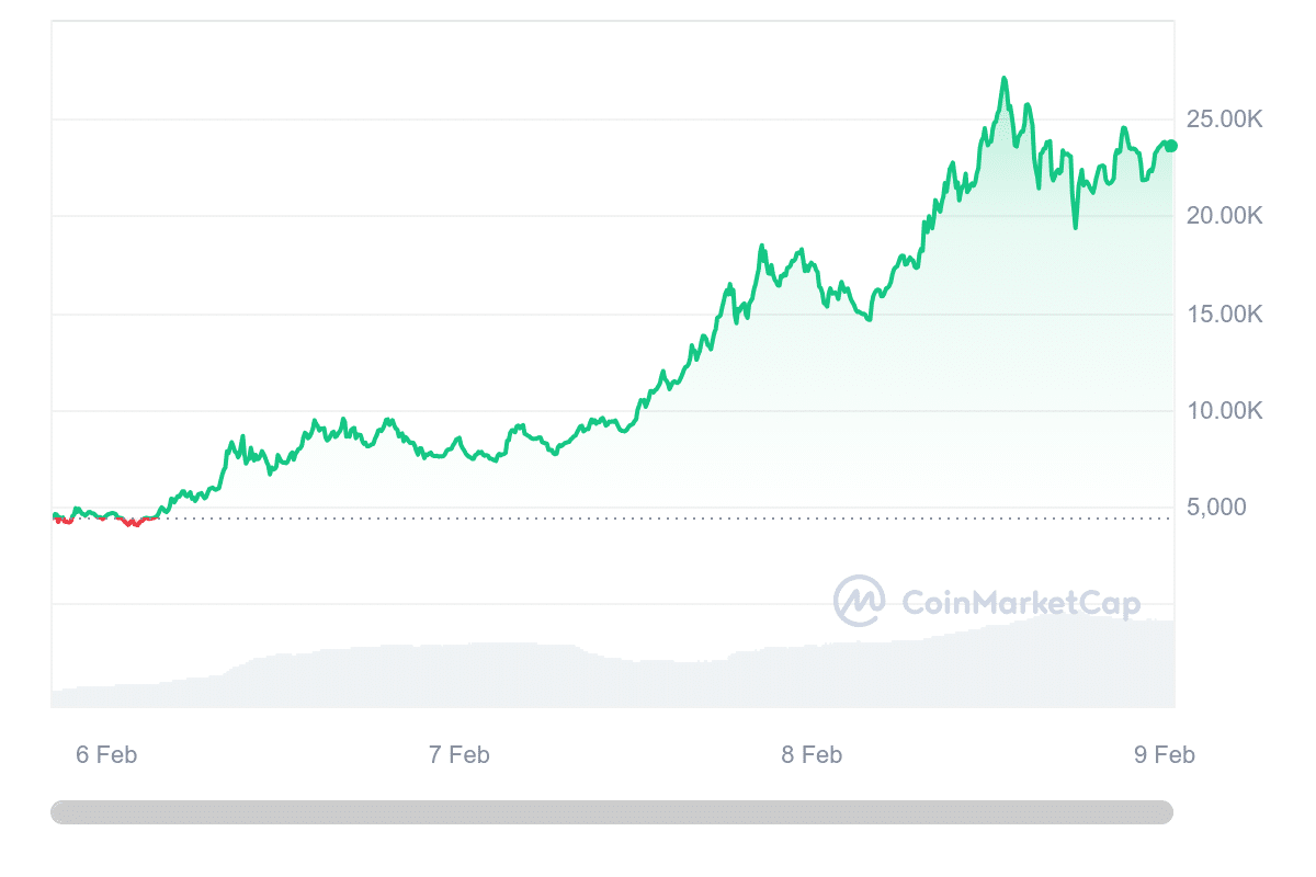 The token in question is not listed on Binance and Binance rarely gives the token name. The price of the token Binance mentioned is up more than 35% today and has a staggering market cap of $190 million.