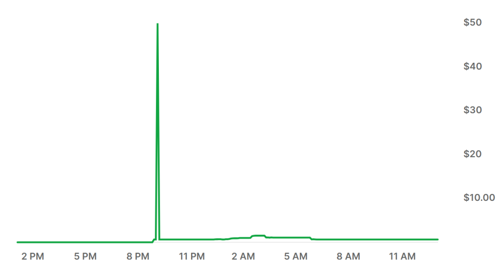 For a brief moment at 11:30 p.m. Thursday, the price of XRP on Gemini skyrocketed to a staggering $50 per token.