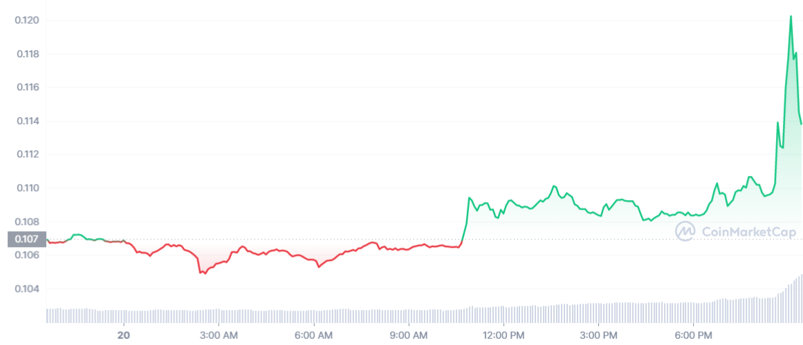 A 24-hour chart of CoinMarketCap showing the rise in price following the volume increase on the South Korean exchange Upbit.