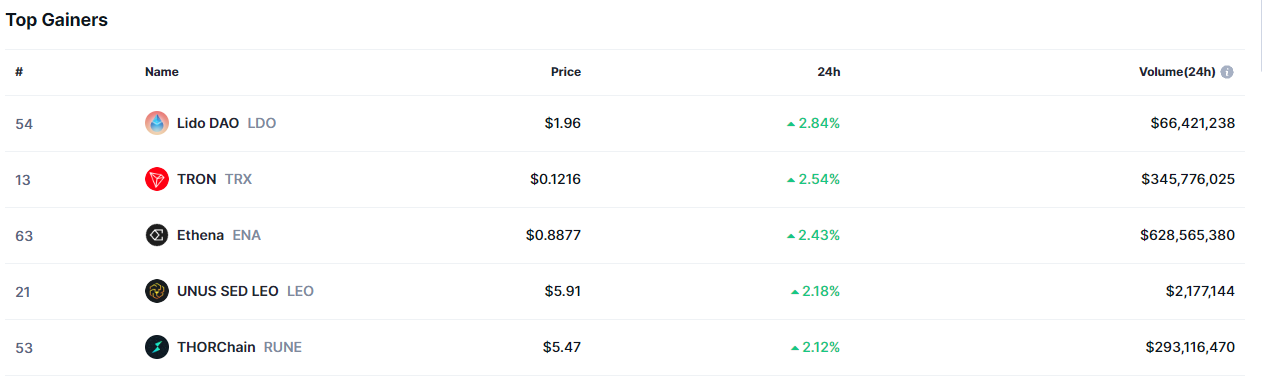 According to CoinMarketCap data, Lido DAO (LDO) 2.8%; TRon (TRX) 2.5%; Ethena (ENA) was among the altcoins that differentiated positively from the market with an increase of 2.4%.