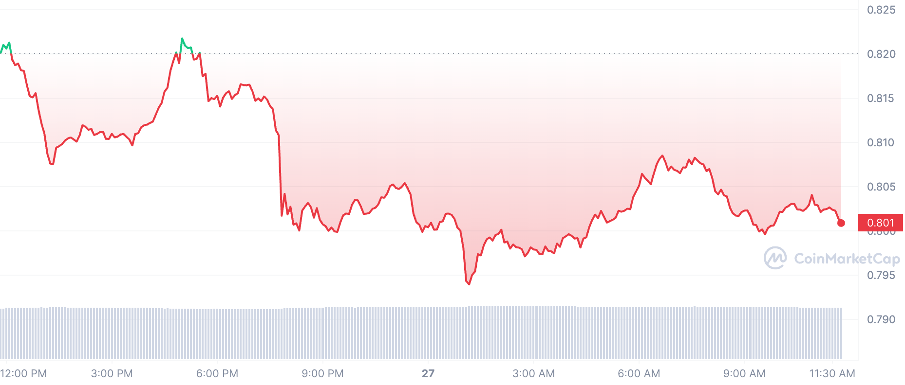 At the time of this writing, XTZ price was trading at $0.79, down 2.68 percent.