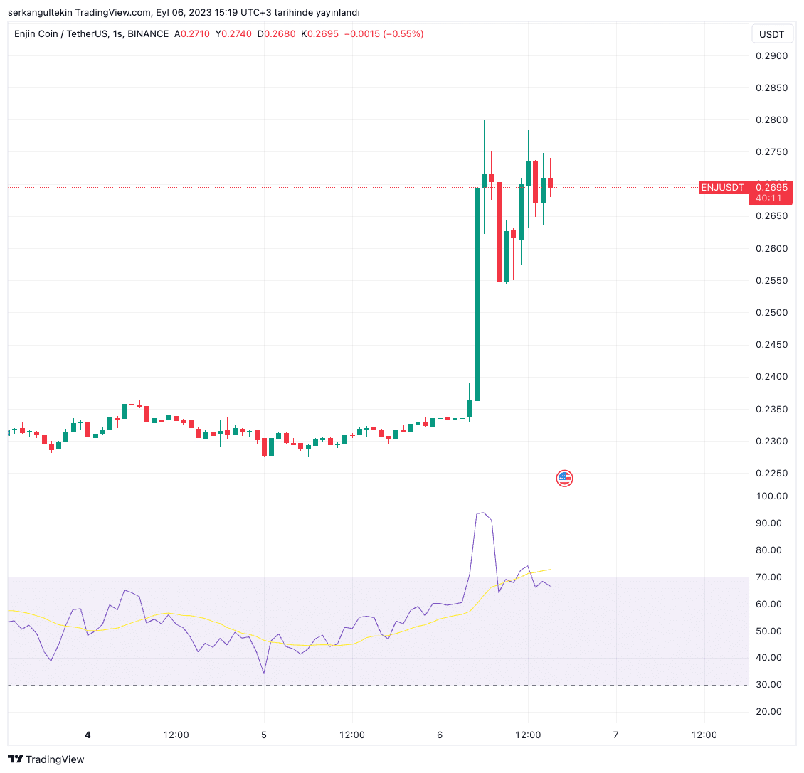 ENJ, which experienced a 20% increase after this announcement, rose to $ 0.2846.
