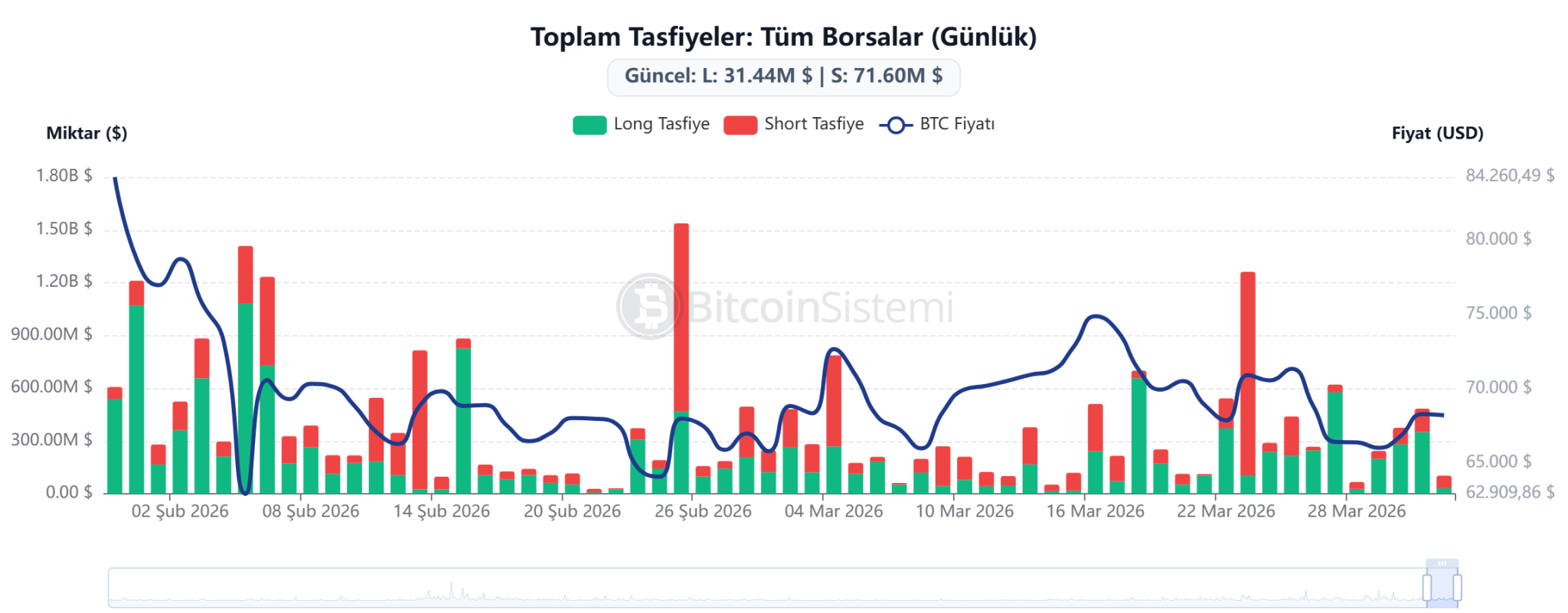During this period when prices are confined within a narrow range, the liquidations in the derivatives markets present a striking picture. In a process where a total of $109.16 million in liquidations took place, short positions accounted for $76.51 million, or 70.1% of the total, indicating that investors who took positions against upward movements in the market were hit harder. In contrast, long liquidations remained at $32.65 million.
