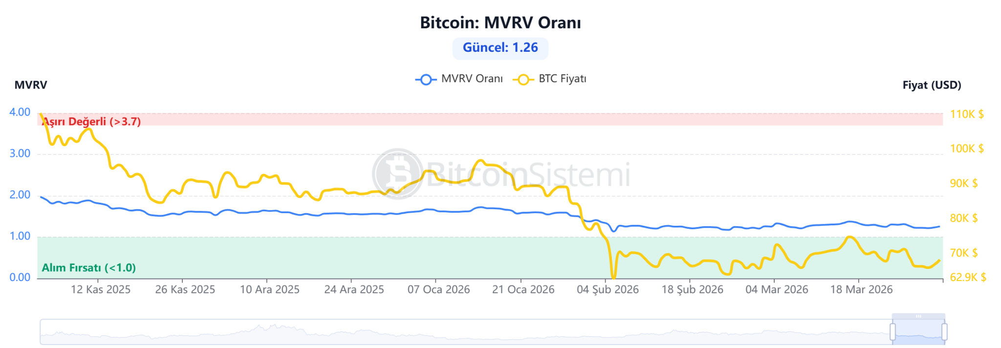 However, the MVRV ratio, another important indicator suggesting that the market is not overheating in terms of valuation, is measured at 1.26. This value reveals that Bitcoin is neither excessively expensive nor historically cheap, but rather moving within a band considered to be “equilibrium.” According to experts, an MVRV below 1 is considered a strong bottom signal, while levels above 3.7 indicate a market bubble and a potential peak risk.