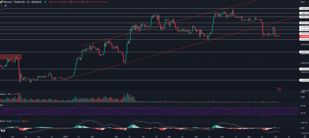 Looking at the Bitcoin chart, the important support level is $25150. In particular, breaking this level may further increase the downward pressure.