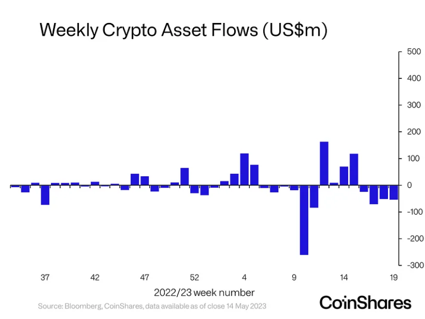While the decline in the crypto market in the second week of May coincided with the outflow of funds, $ 54 million worth of mutual funds were withdrawn from the market within a week, according to the data.
