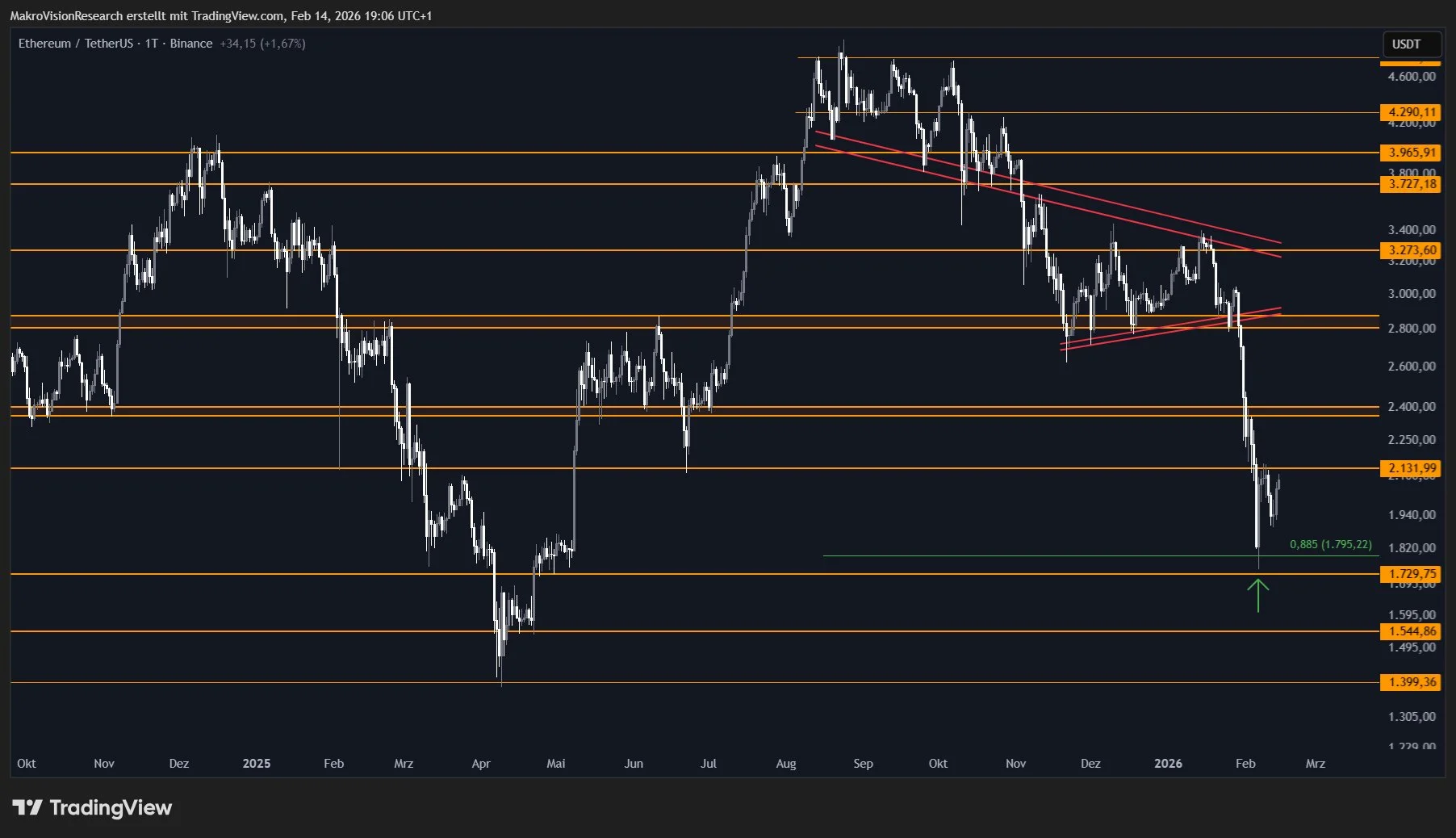 In its latest analysis, MakroVision assessed the technical outlook for Ethereum (ETH). According to the report, Ethereum rapidly retreated to lower support levels after losing key support zones, experiencing a sharp and strong sell-off.