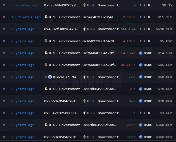 Again, according to Arkham data, the address “0x05…e049”, labeled as the US Government, transferred 3,375 thousand Etheruem worth approximately $11.75 million to the address “0x5a…1871”, which is unknown today.
