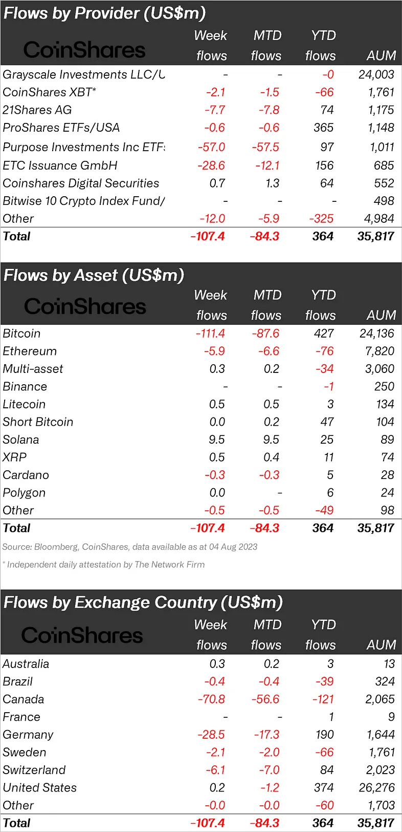 Coinshares said it had $107 million outflows from crypto funds last week.